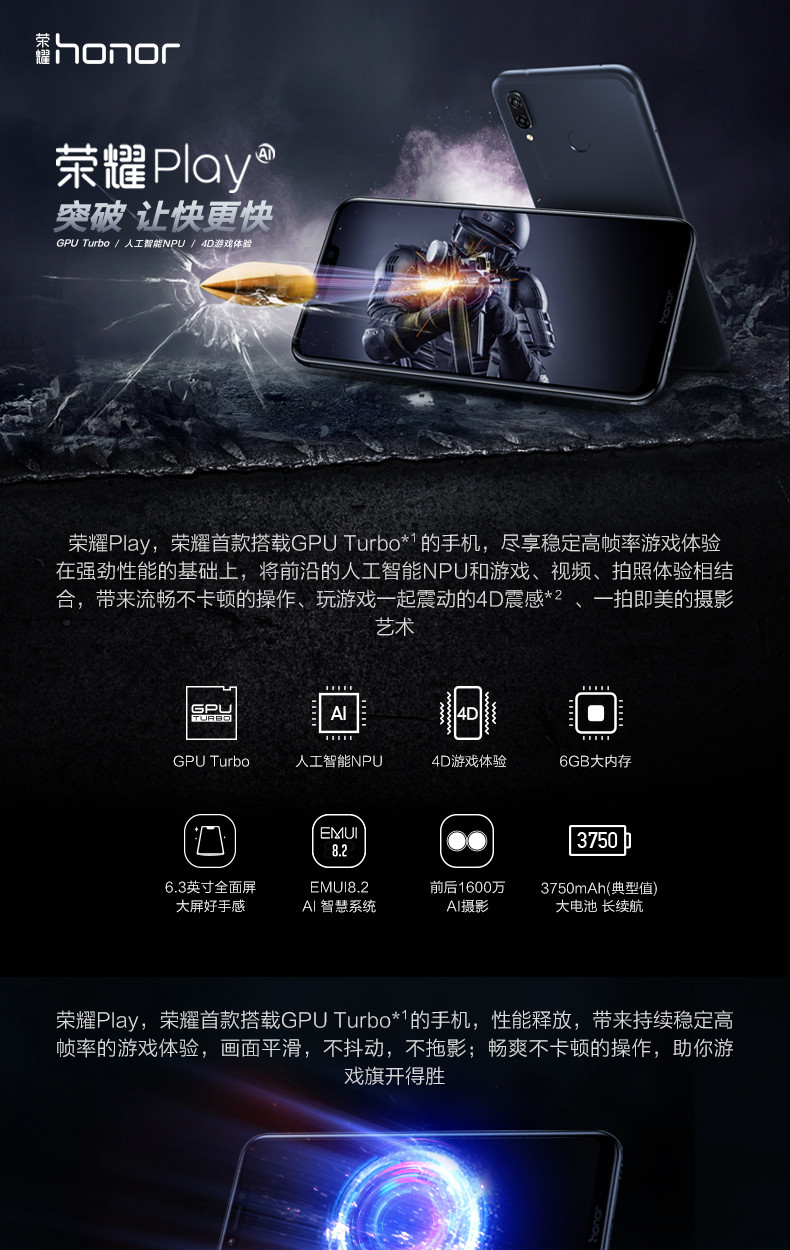 华为荣耀 荣耀play旗舰店paly 10新荣耀piay手机新款plαy官方8x正品v10新品plya